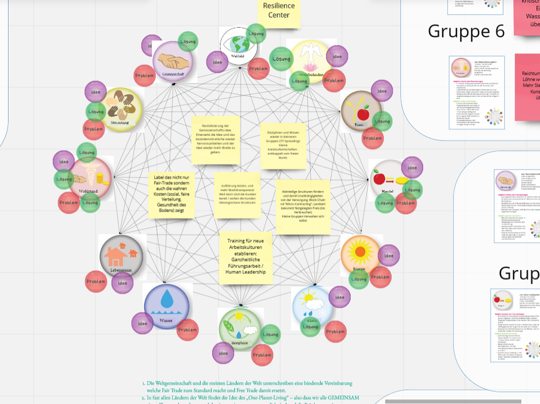 Abschließend entwickelt die Gruppe gemeinsam Lösungen, die sich mehrere der Knoten positive auswirken und keinen negativen Wirkungen auf andere Knoten haben.